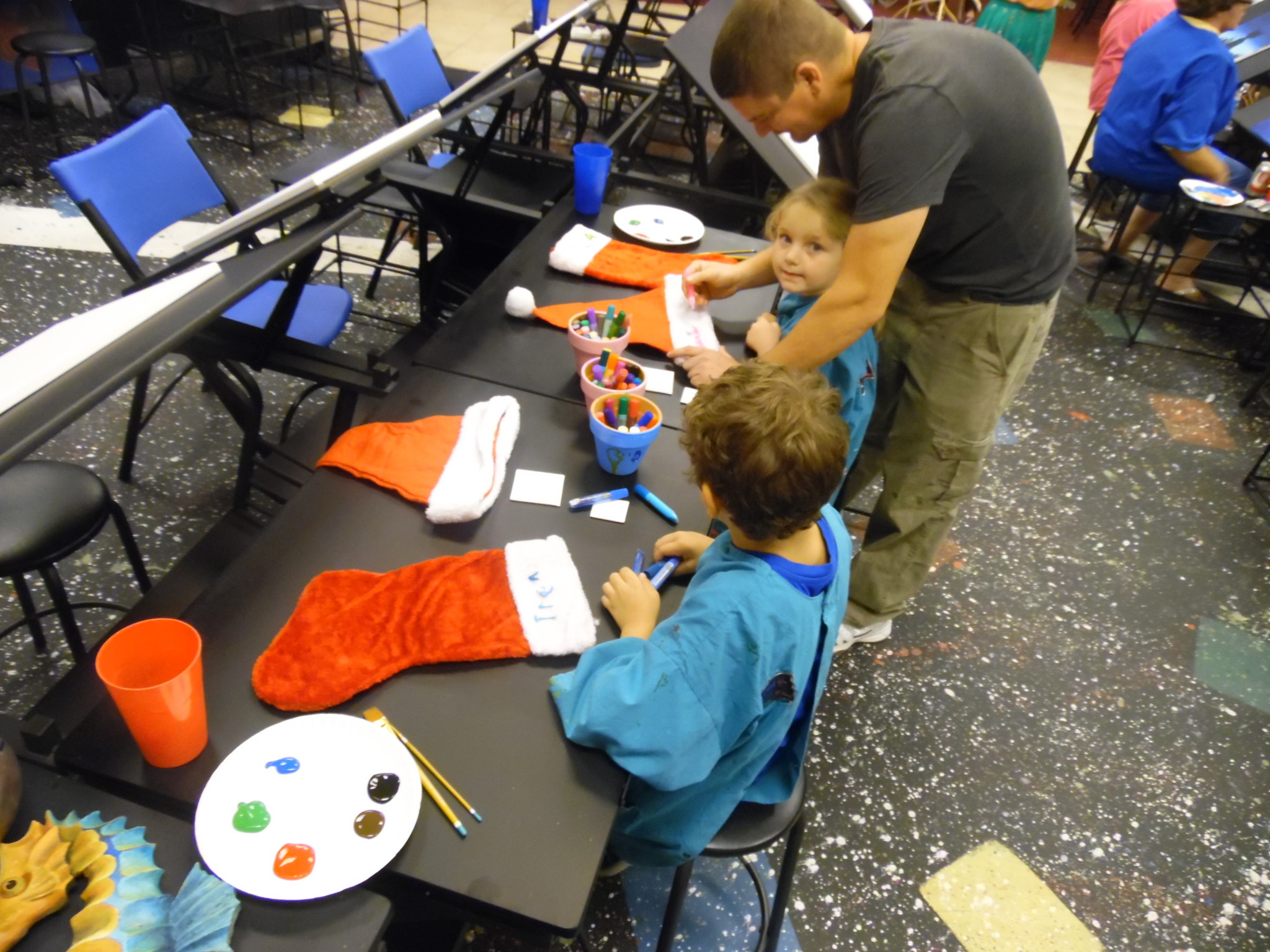 Join us for a day of fun, including all of the supplies you need to either create your own 16 x 20 painting of your choice ($15 to paint yourself, or $25 with artist help. Or you can choose the family fun pack, everyone gets their own Santa or Elf Hat and a Stocking that they decorate with their name and a small canvas ornament to paint. ($20 for the first member and $10 for each additional member). Both packages also include all of your pictures from your activity on one thumb drive per group. We will be having games for the family and kids all day long. There will be a drawing once every hour for a prize. Come and join in the fun!! There will be soda, juices, water and coffee for $1, also have wine and beer for the parents for $2.