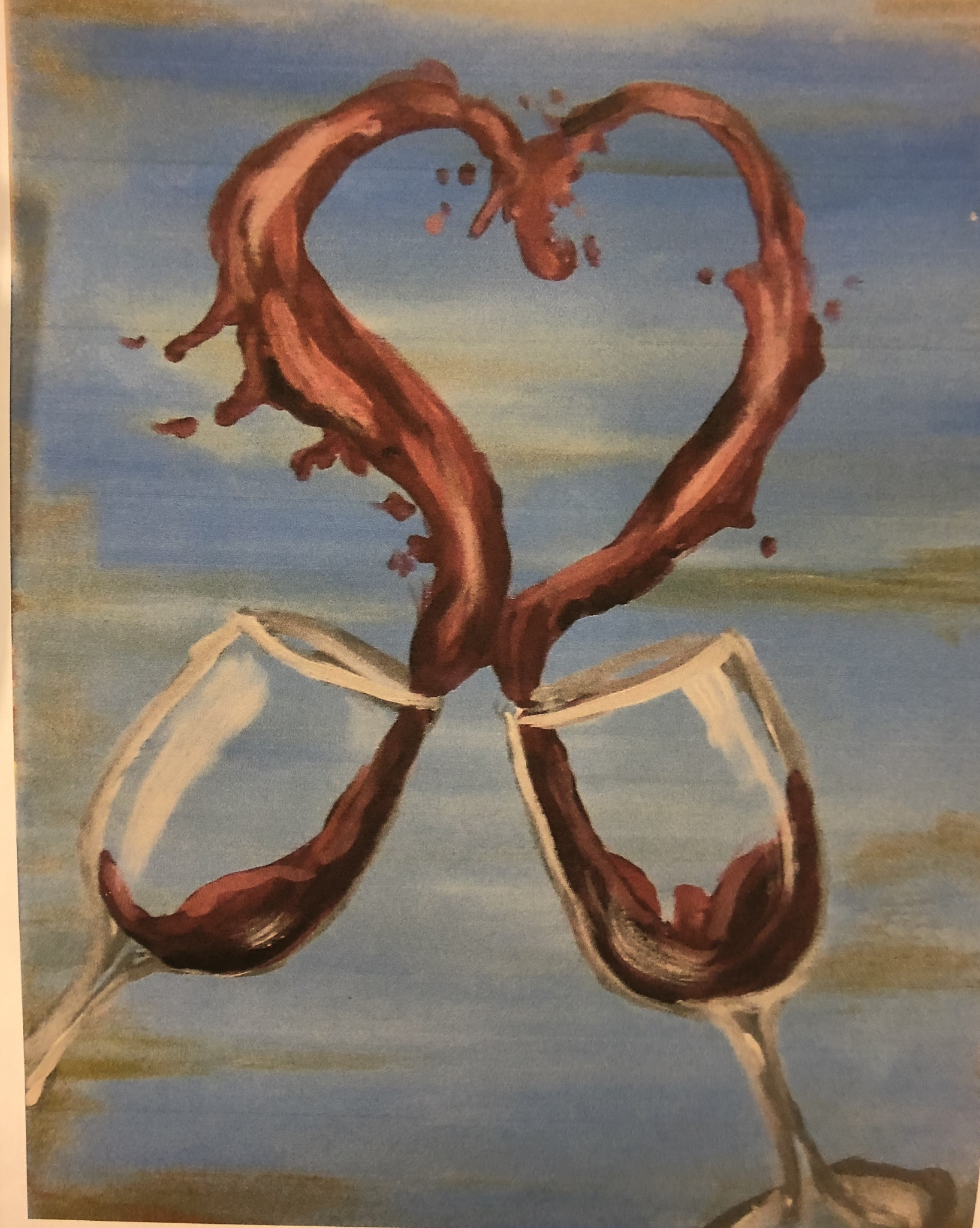 Join us as we paint this picture of clinking wineglass forming a heart of wine.