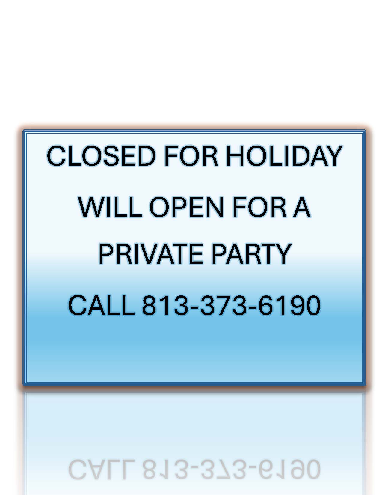 We will be closed for walk in painting today. Call us at 813-373-6190